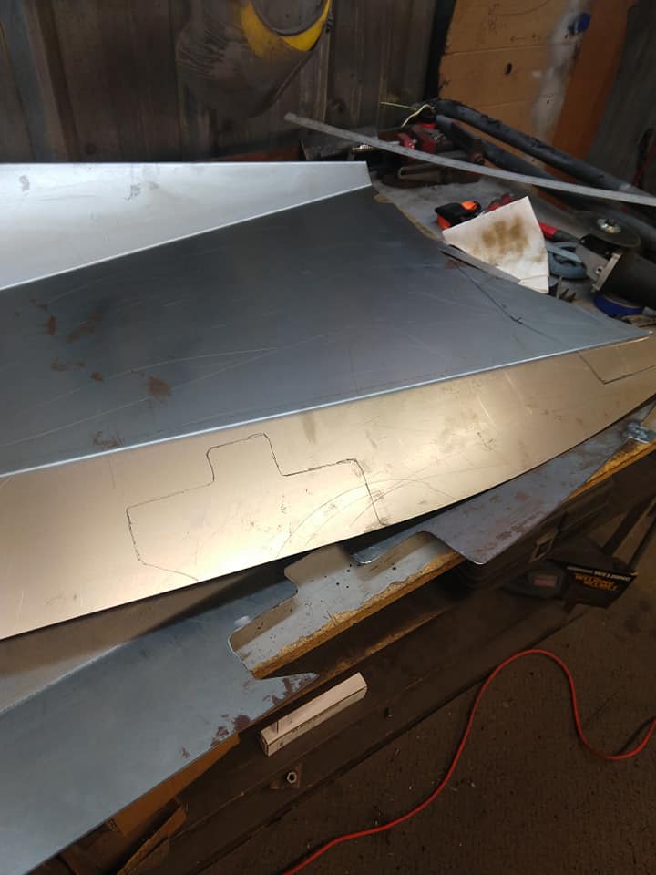 Transfer the shape of the template onto the new steel inner fender and trim. This will be a process of trim, fit, trim some more, fit again until you achieve the fit desired.