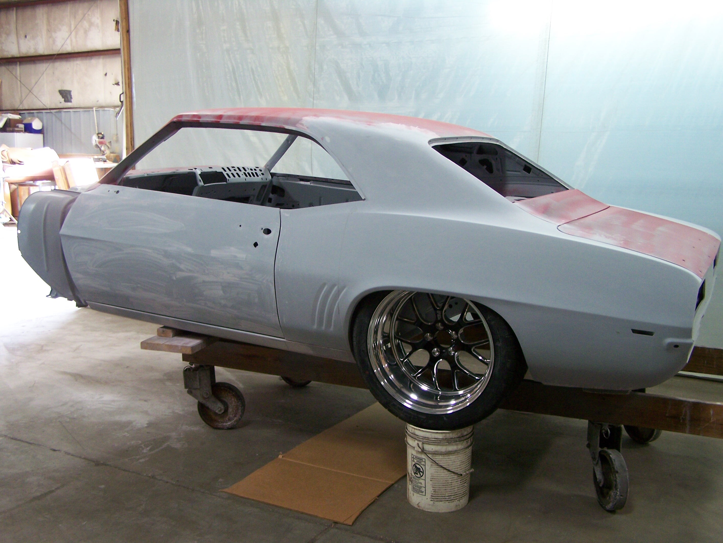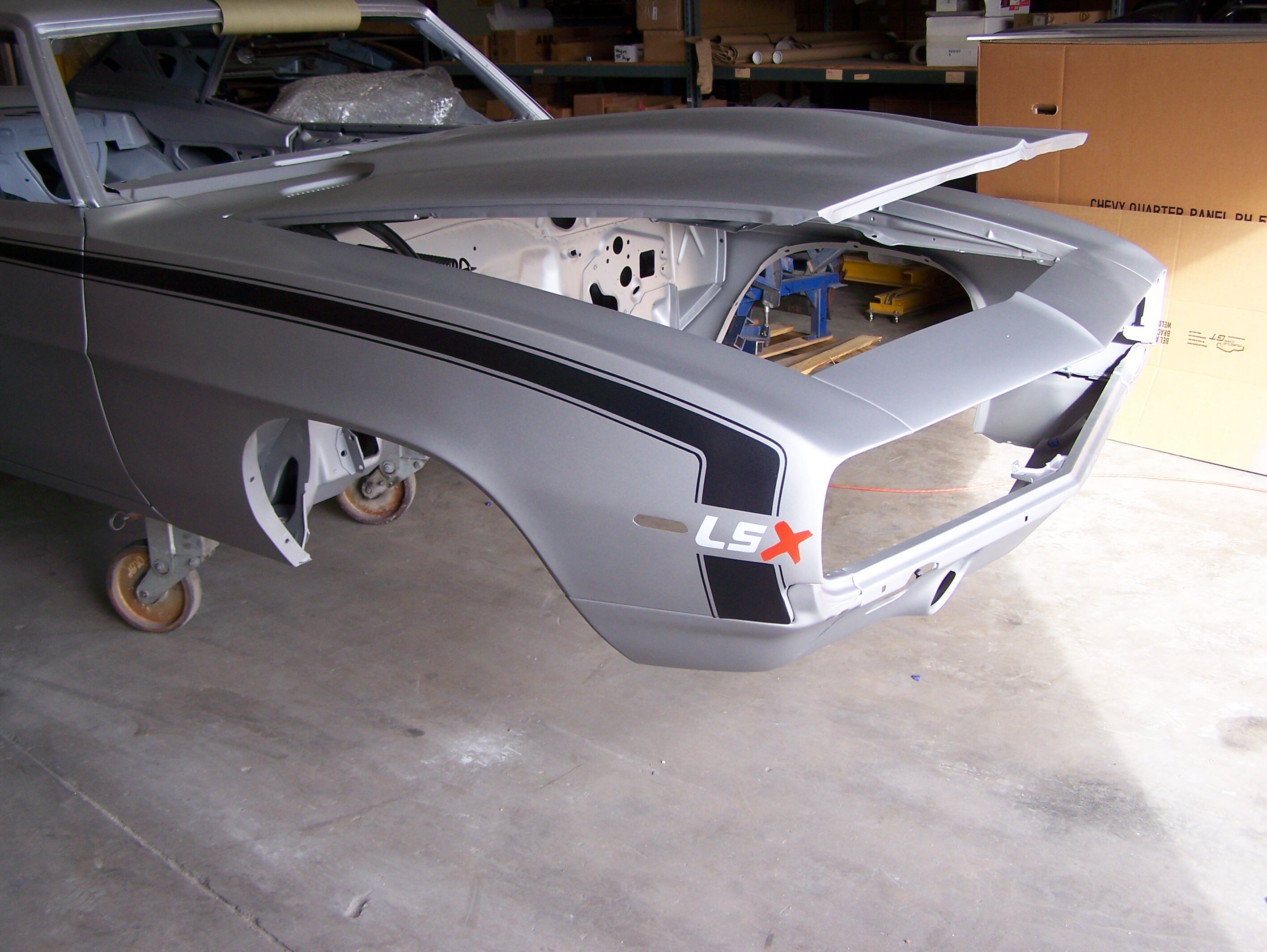 Nothing too fancy here, we applied a flattened bright silver single-stage urethane not intended to be a “finish” coat. This car will be given away as a roller that the winner can finish as he/she likes. Gary Zuyus from Motorhead Design www.motorheadshirts.net applied the graphics and LSX logos after the car returned from the paint booth.